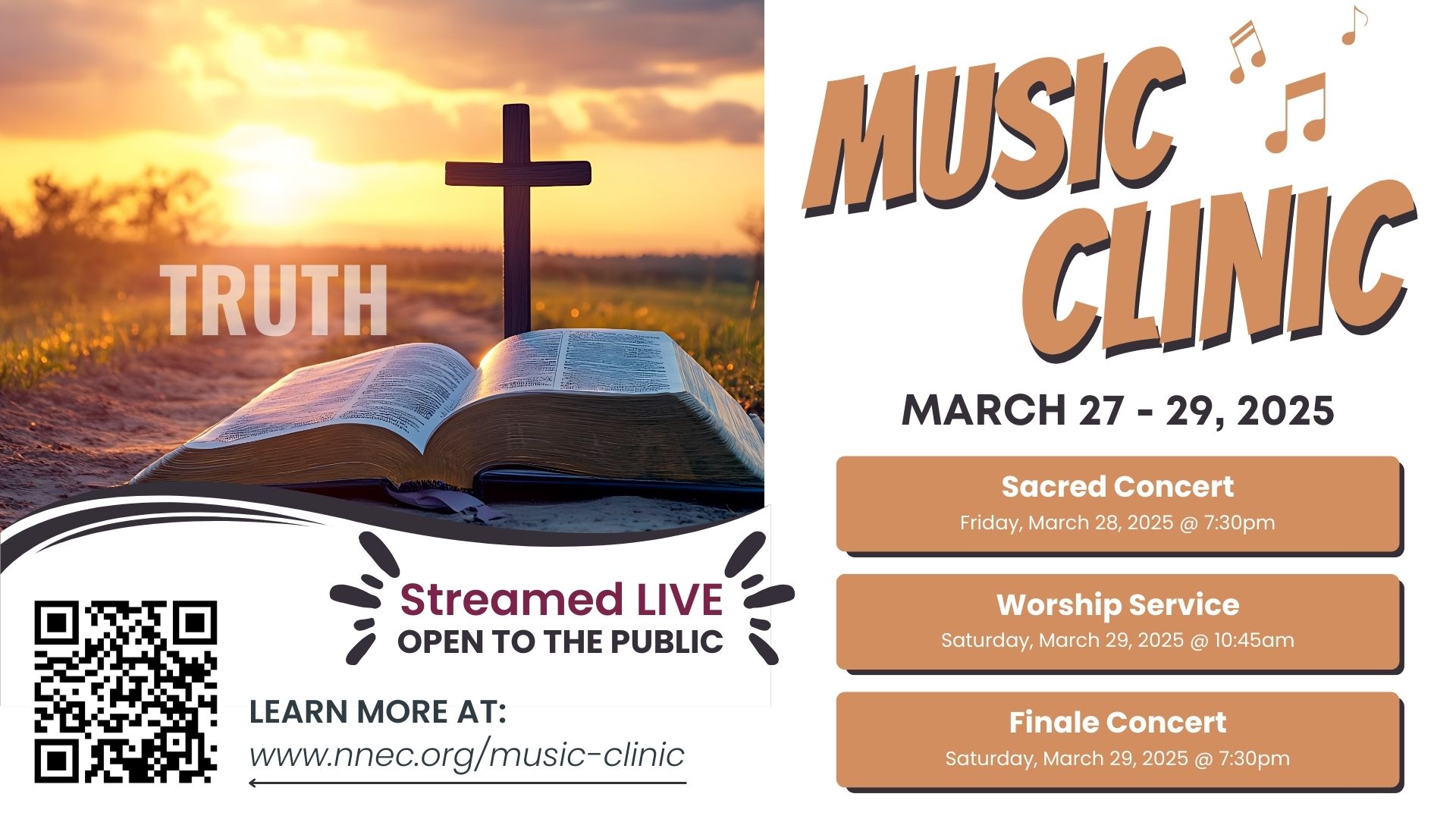 Register for next year's Music Clinic at www.nnec.org/music-clinic. The event will take place on March 26-28, 2026 and the main concerts will be live streamed.