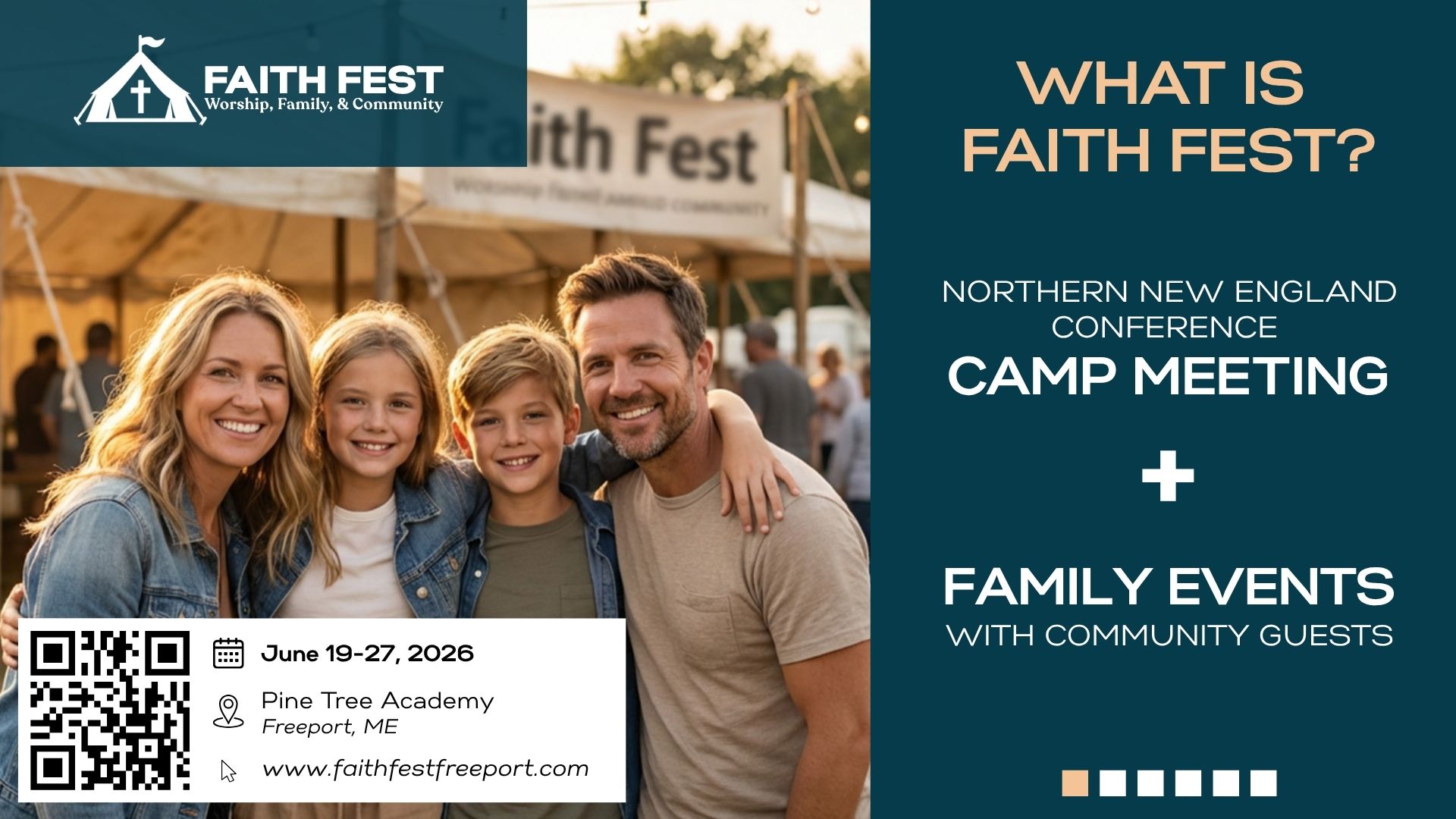 Faith Fest is the new name for Camp Meeting and includes the addition of family events that the community will be invited to. More info can be found at www.nnec.org/campmeeting. Camp site registration is open and cafeteria meal tickets are available. Messiah's Mansion is coming and you can reserve a tour time already, if desired. We need 60+ volunteers this year and are looking to have you sign up soon to volunteer. We hope you can join the team!